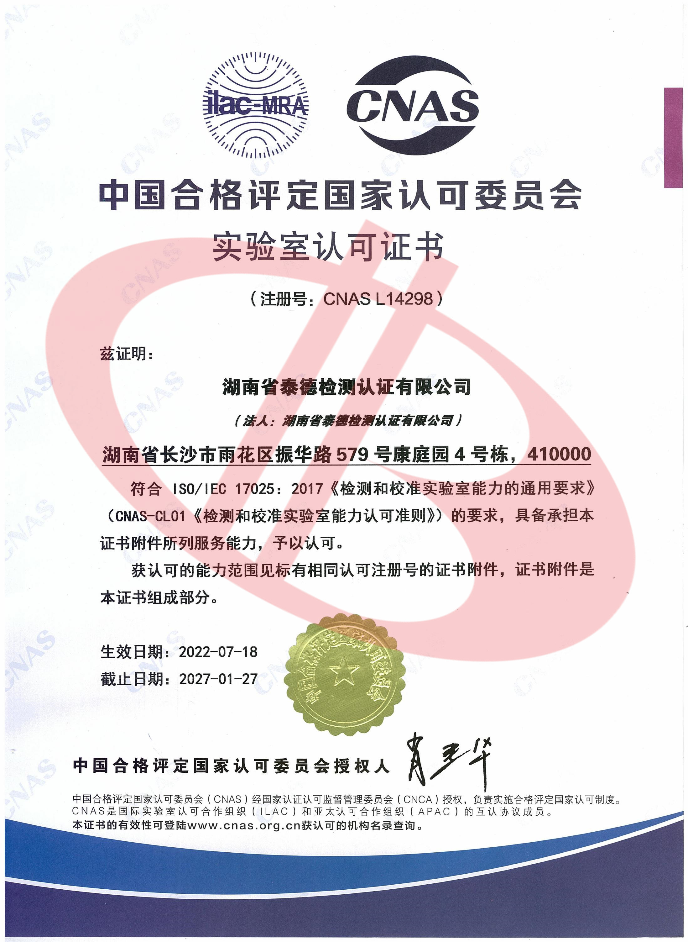 泰德檢驗(yàn)檢測(cè)資質(zhì)證書(shū)