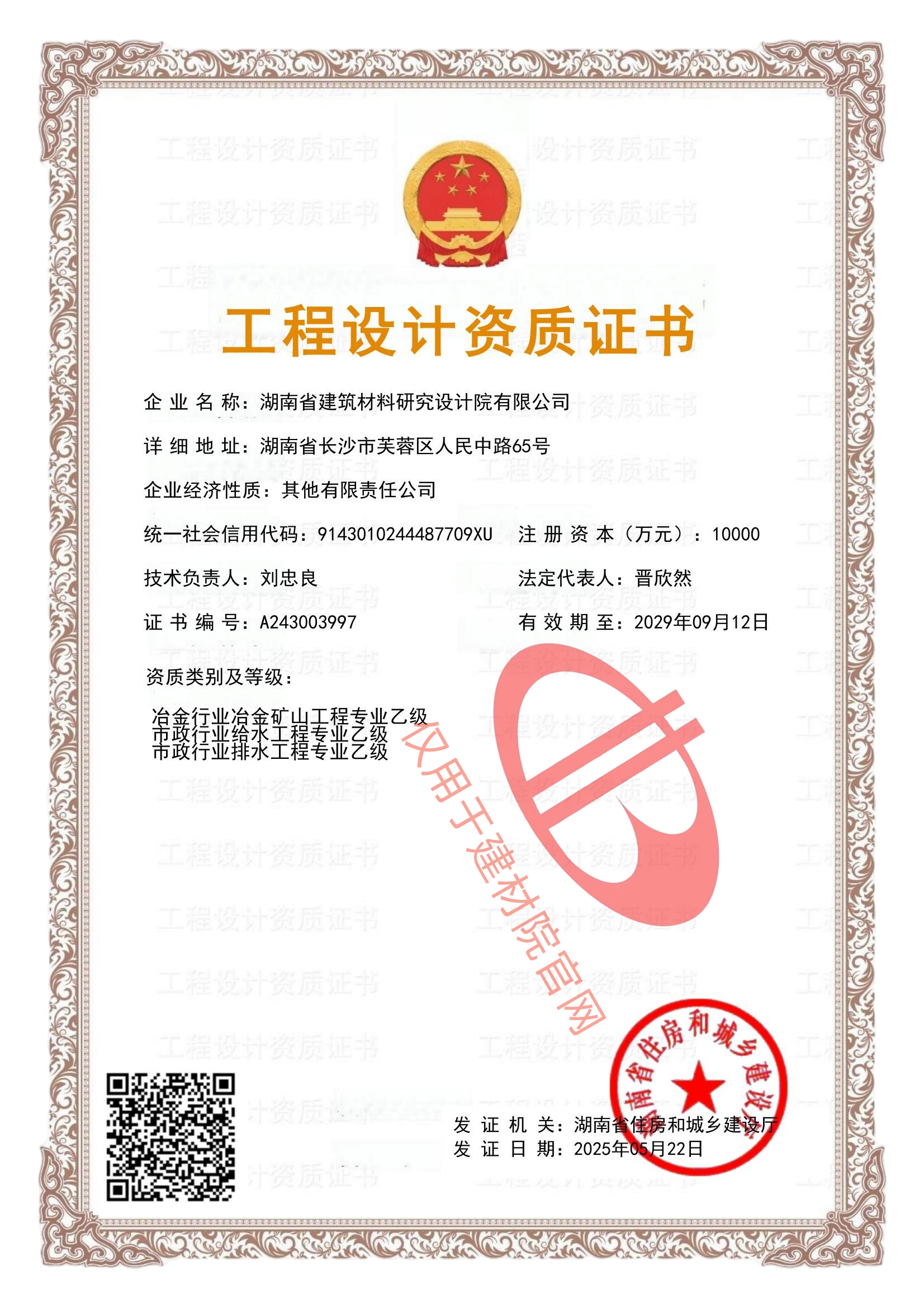 湖南省建筑材料研究設(shè)計(jì)院有限公司的前身為湖南省建筑材料研究設(shè)計(jì)院,成立于1958年,是1993年全國(guó)首批榮獲國(guó)家建材行業(yè)設(shè)計(jì)、工程總承包甲級(jí)資質(zhì)的四個(gè)科研設(shè)計(jì)單位之一。